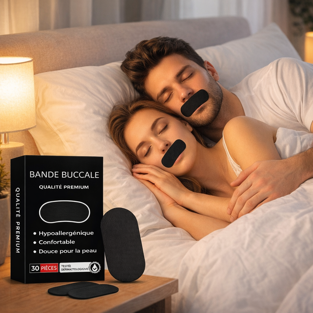 La bande buccale anti-ronflement maintient doucement la bouche fermée pour favoriser une respiration nasale optimale. Elle aide à réduire le ronflement et améliore la qualité du sommeil, sans appareil ni bruit.